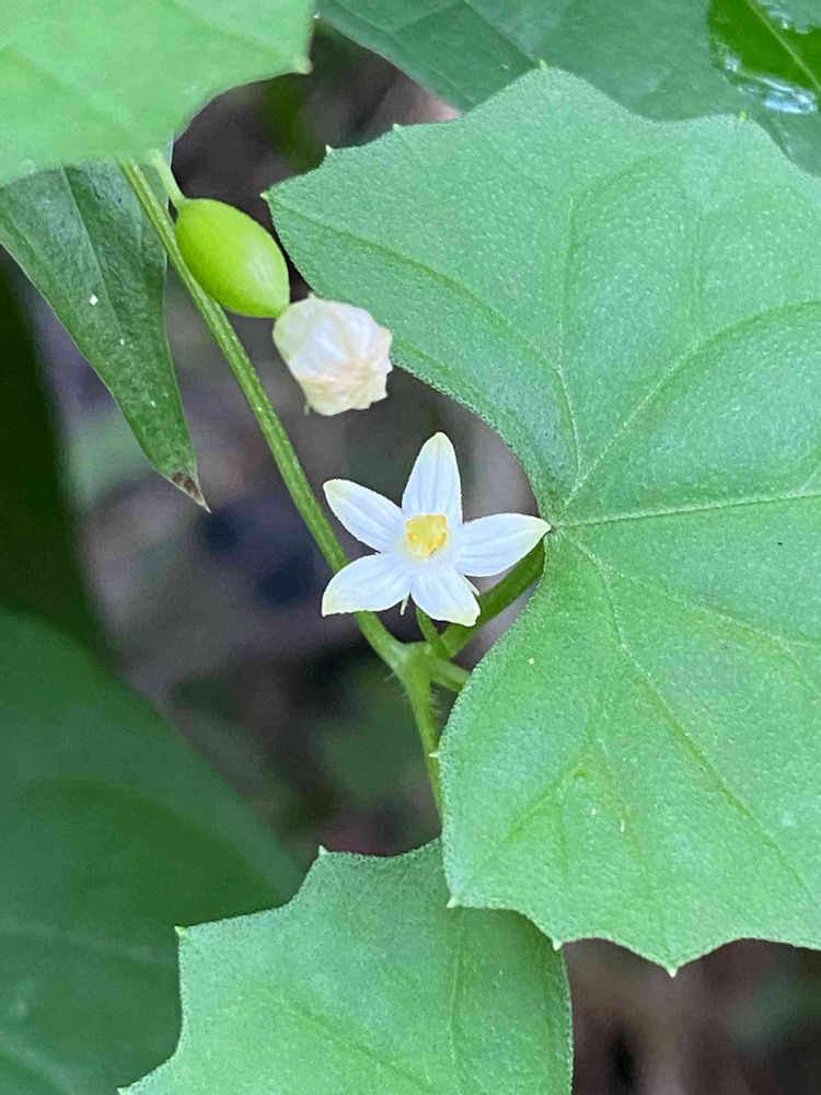 華やかなカラスウリの花もいいですが、直径6ミリほどのスズメウリの花は可愛いくて私好みです💕
