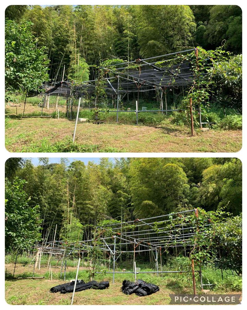 まだまだ暑い😵ですが週末は台風が直撃しそうなので、今のうちに行者にんにくの畑の遮光ネットを外しました😃ほぼ夏眠しているから大丈夫だと思う😅しかし、サルナシ伸び放題ですな🤣💦