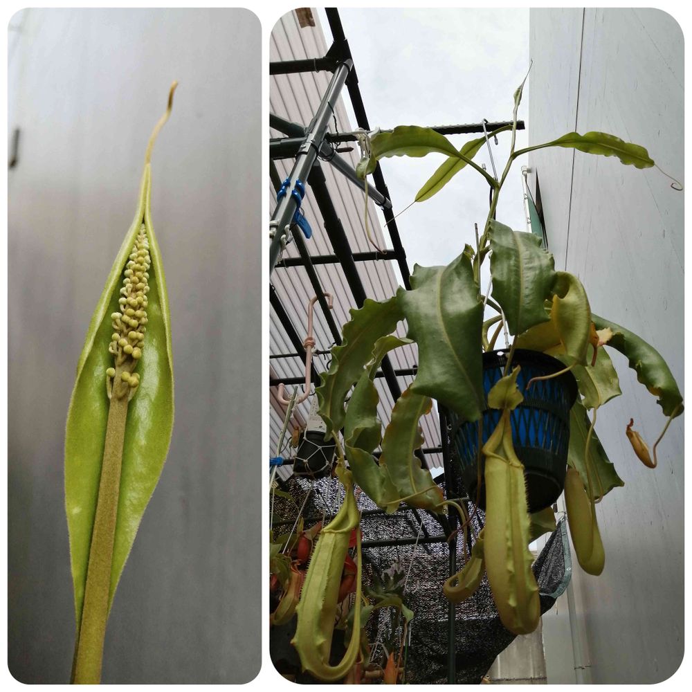 ネペンテス マキシマグリーンの天辺に花芽が〜😆まだつぼみですが♂♀が分かったら✂️します。