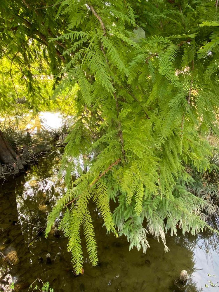メタセコイアの葉は小葉が対になっているがラクウショウの小葉は互い違いに生じる。