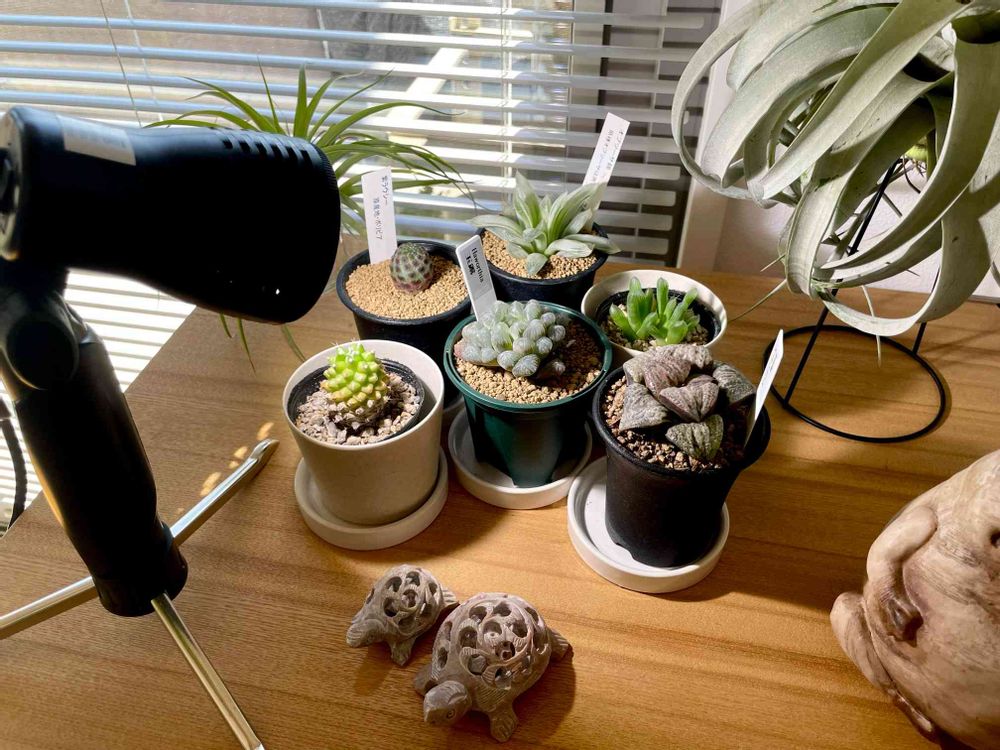 コーナンで植物育成LEDライトを当てて陳列してるのを見て、真似してみた😁