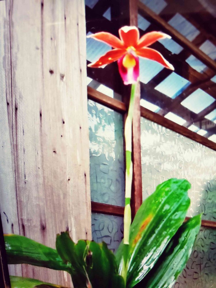 花の形がよくわかりませんが、カクチョウランなどファイウス属のランに似ているように思います。