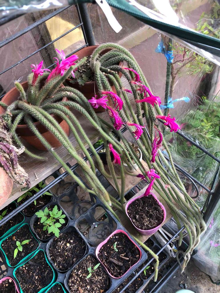 実家にある長ーーーいサボテンが綺麗な花を咲かせてました🌸