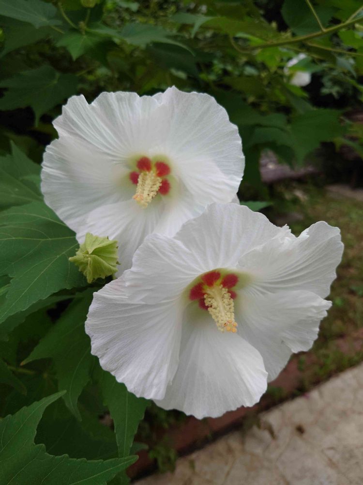 ふたつ重なって咲く白いフヨウが綺麗でした。