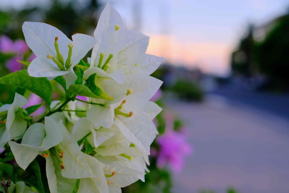 そうですね。暮れゆく空をバックに真っ白なブーゲンビリアが目立ってました〜。帰りはもう真っ暗。何も見えなくなりました。⭐