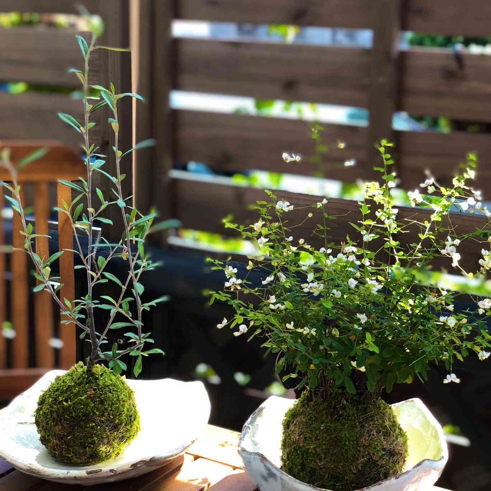 苔玉盆栽のオリーブと蒔絵萩(山野草だそうです)🌱⋆。