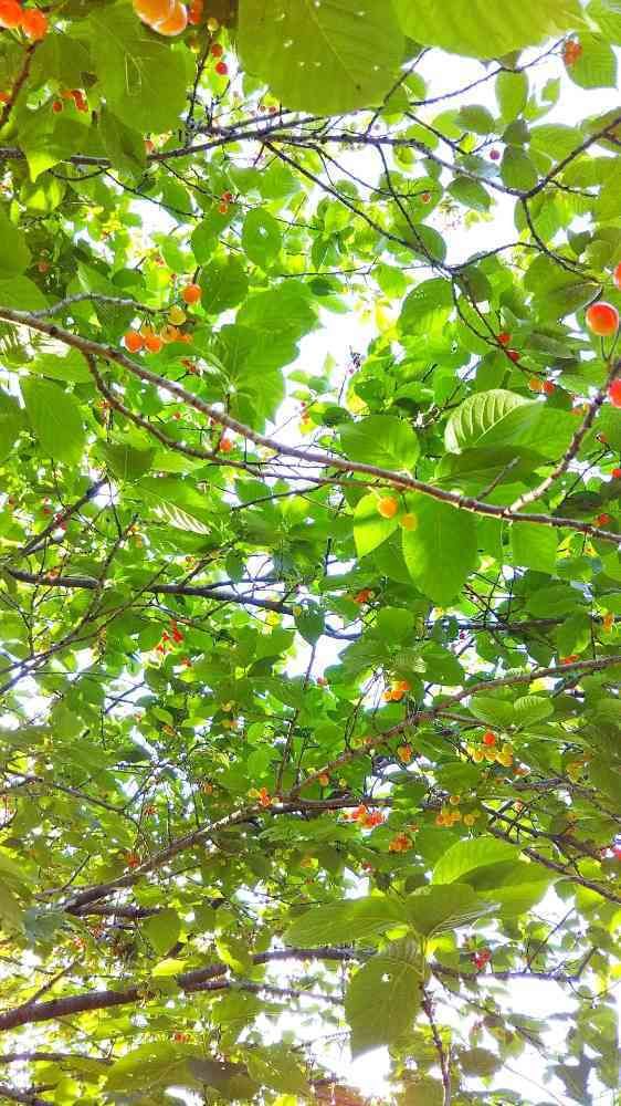 きらきらしてまぶしくて葉っぱもとてもきれいです、さくらんぼ🍒がかわいくてイイなあ😀🍀🍃