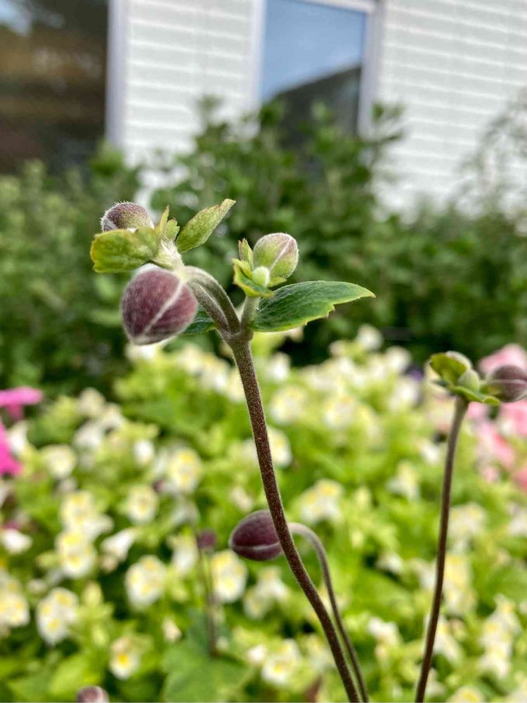 この秋明菊の蕾 かるくひと月以上 このままです 前に上がった蕾は このまま萎れてしまいました🥲