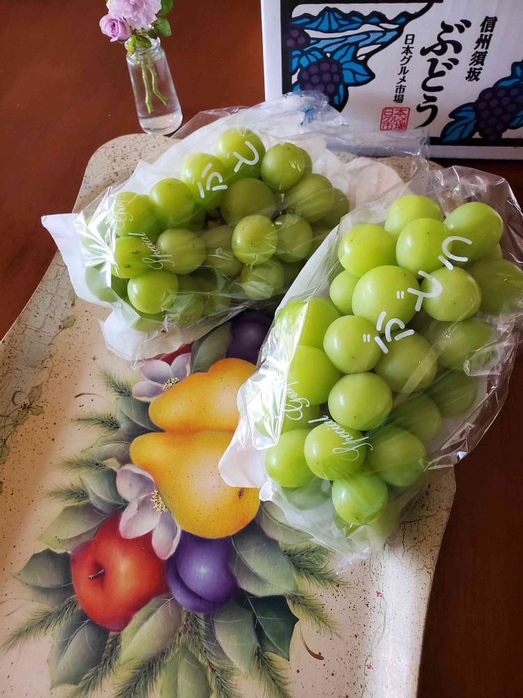 信州須坂のシャインマスカット以前描いたトールペイントのトレーに