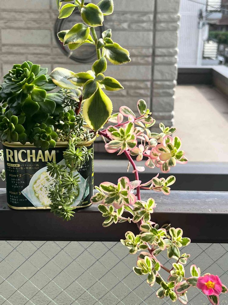 親のポーチュラカさんの方が、グダってる😅葉っぱ一枚で凄いよね🫢