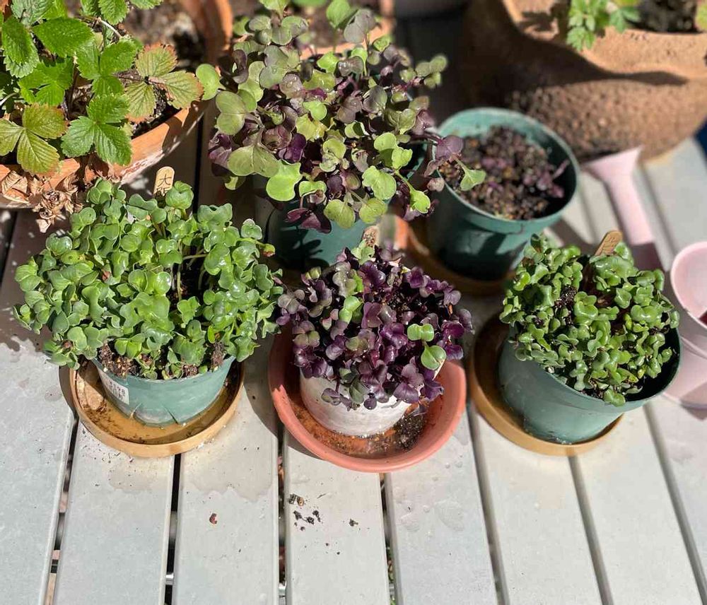 バルコニー/ベランダ,ルビーカイワレ大根栽培,紫カイワレ大根栽培の投稿画像