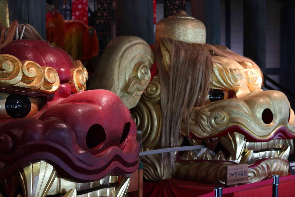 桐の木から出来ているんでしたね。2、3人がかりで獅子頭をあやつり、庶民も武芸を…の精神から 獅子舞として 賑やかに街を練り歩きますね。