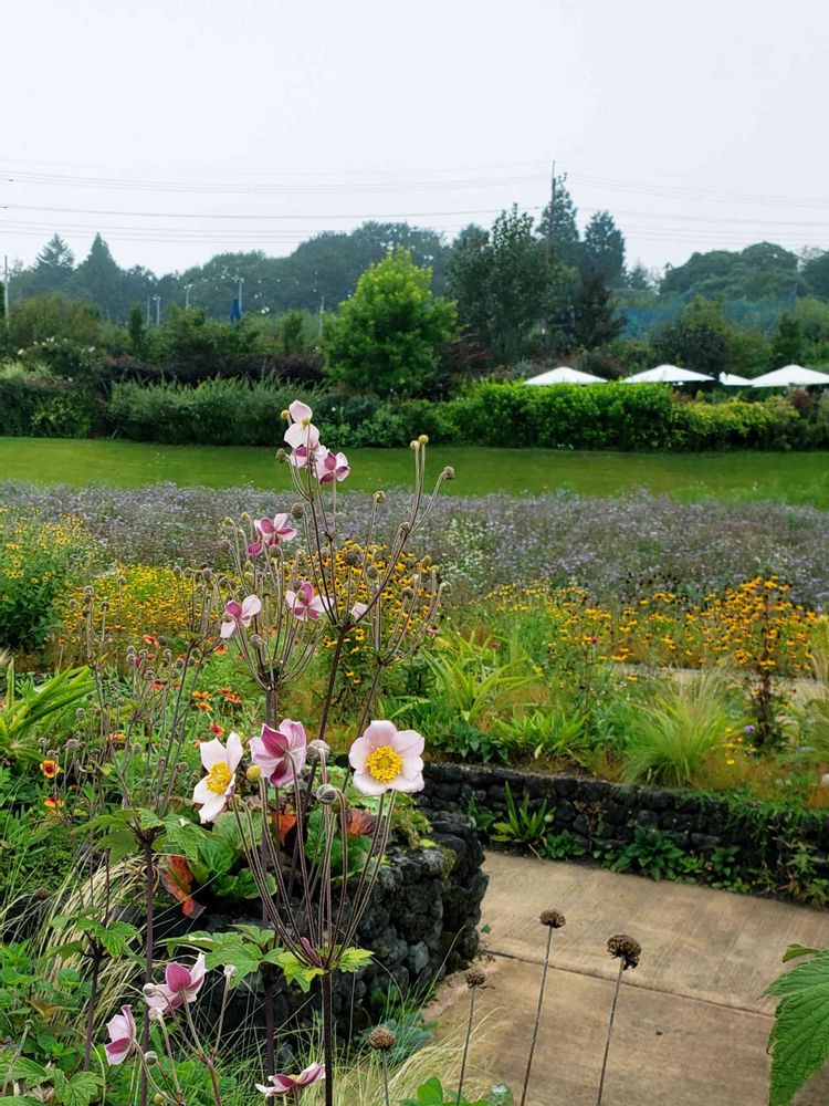スパイラルガーデンのレイズドベッドに植えられていたシュウメイギクです。😃✨