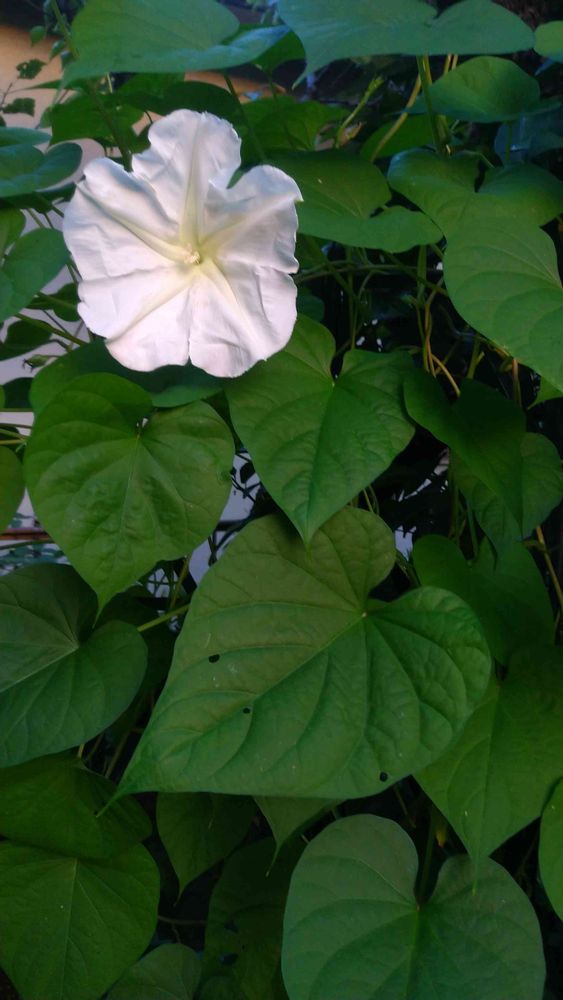 ハートの形の葉っぱに、丸い真っ白な夜顔の花が似合います。