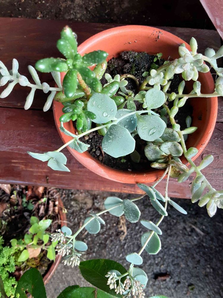 多肉3種です。6月だったかしら、合同の外回りをした時、所長代理がお客さん家の多肉を誉めたら沢山くださったそうで私にも分けてくれると言うので3つだけ貰いました。GSに出すまで3ヵ月かかりました。