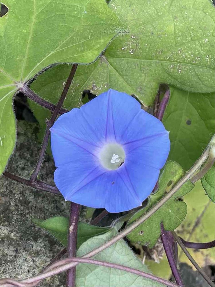 このアサガオは、何年か前に植えた時のこぼれ種から咲いたものです(*´艸`*)