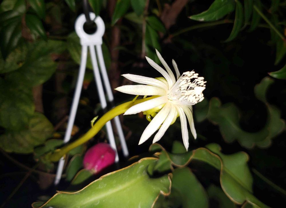 ドラゴンフルーツの花を初めて見ました。ドラゴンの鼻先みたいですね〰️😃