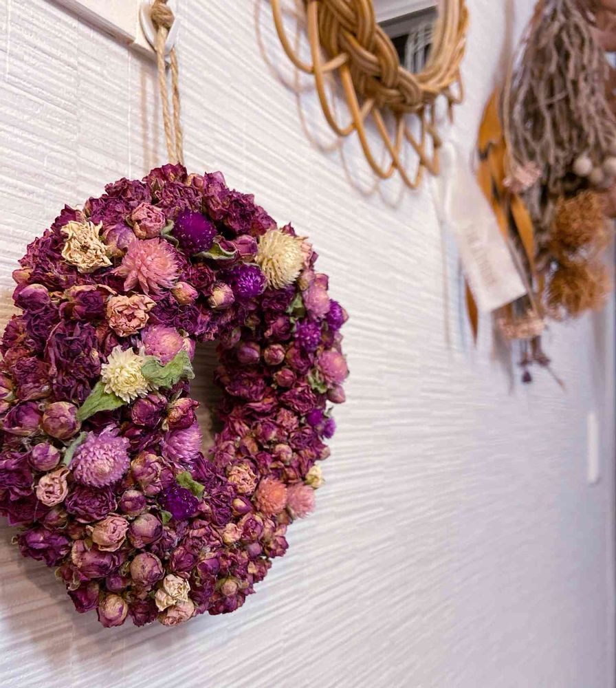 定番のドライリースもいいけど、フレッシュで華やかさのある花のリースもステキ!