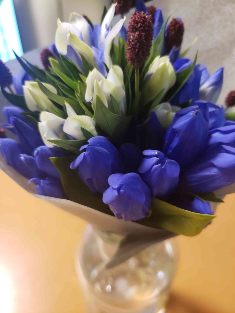 でも、大きな仕事のきりがつき、お花が買いたかった様です。おしゃれなお花やさんの💪力をお借りして