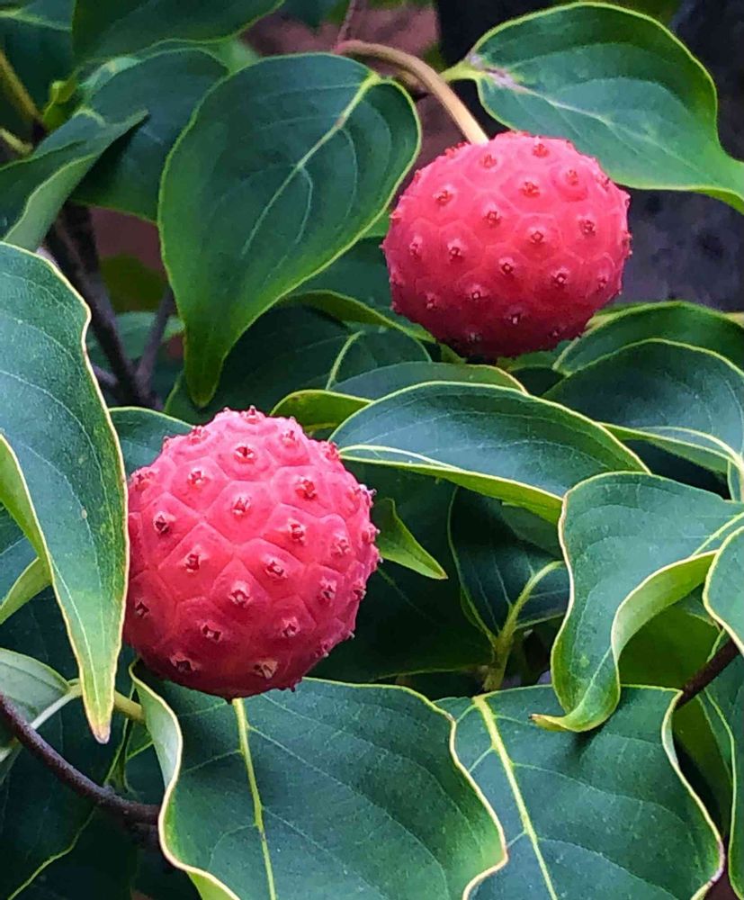 通勤途中で以前見かけた他所様のヤマボウシの花が、真っ赤な実をつけました❤️