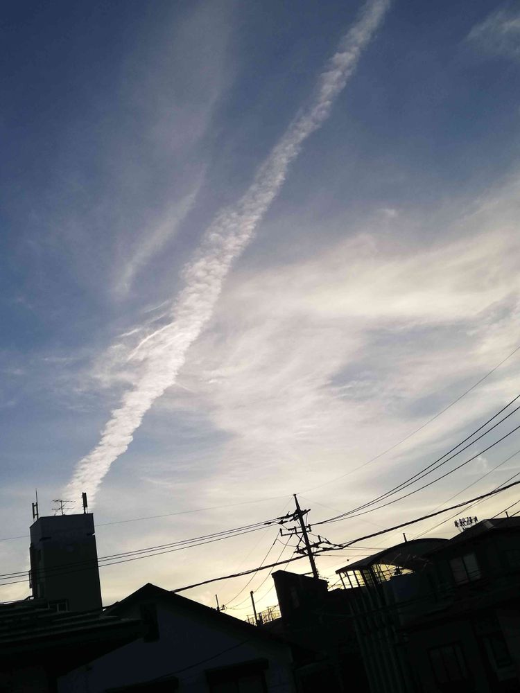 私は5時頃起きて朝焼けを見て、少し過ぎて又、空が気になって見たらなんと飛行機雲☁️にしては帯状でしたね~