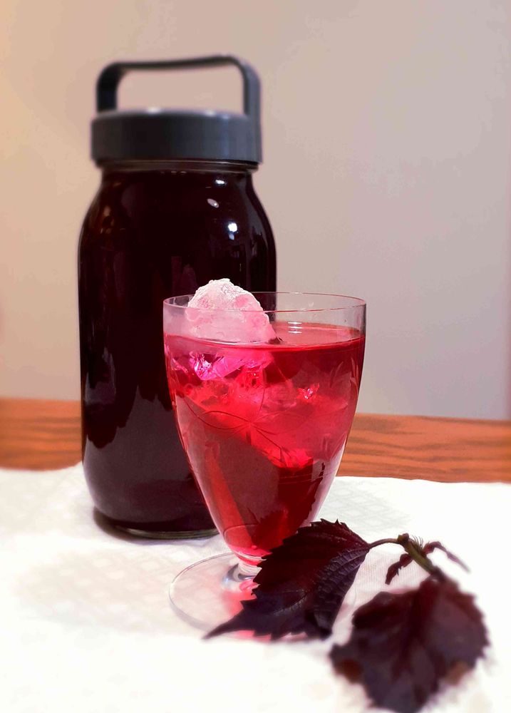 赤紫蘇だけだと色は綺麗だけど香りが今一つ、青紫蘇も混ぜて煮出すと清涼感UPです⤴️🍹🎵
