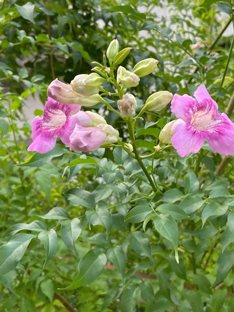 やはり、ピンクノウゼンカズラなんでしょうか。蔓にならずにまっすぐ伸びることもあるんでしょうか。