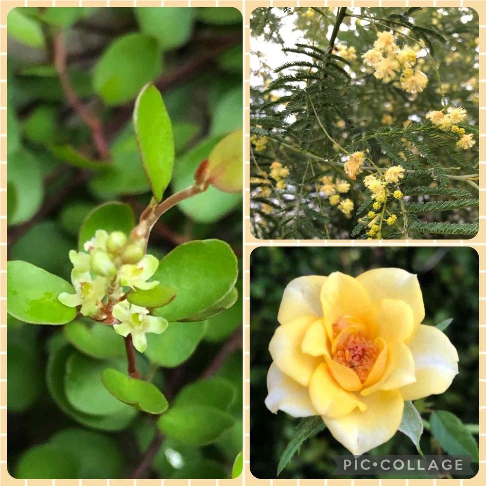 右上)3m位になった四季咲きのアカシアデアネイさんがまた咲き始めてます💛
