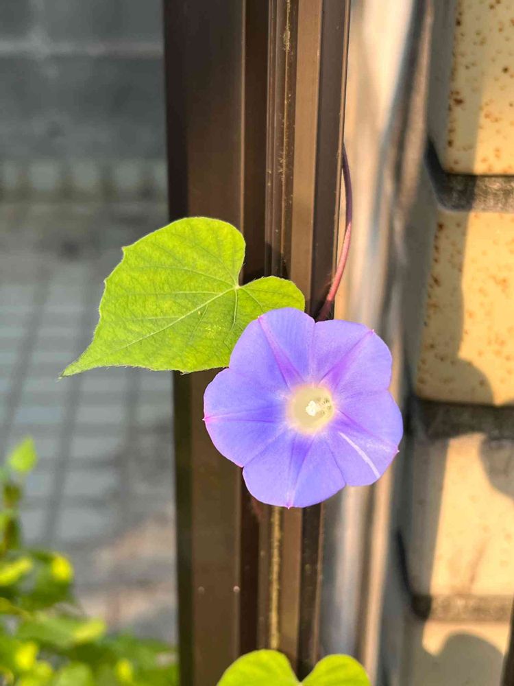 玄関先のへデラーズ鉢の中にしれっと芽吹いたこの植物は夕顔ではありませんでした。2日ほど前の朝咲いていたので、調べたところ、アメリカアサガさんみたいでした😅