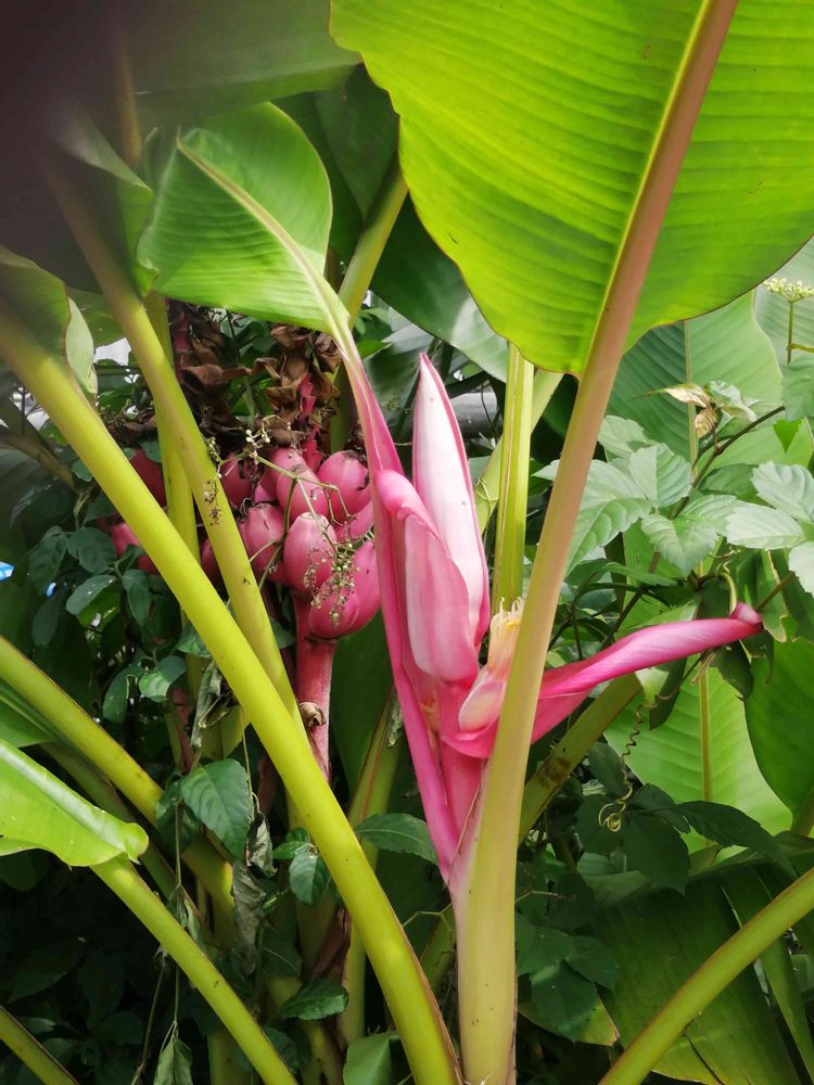 珍しいバナナに出会いました‥別名ピンクバナナまたは毛皮バナナと‥毛皮?かどうかわからないけどユニークな色と形‥食べられなくはないけどお味は😵主に鑑賞用とか‥