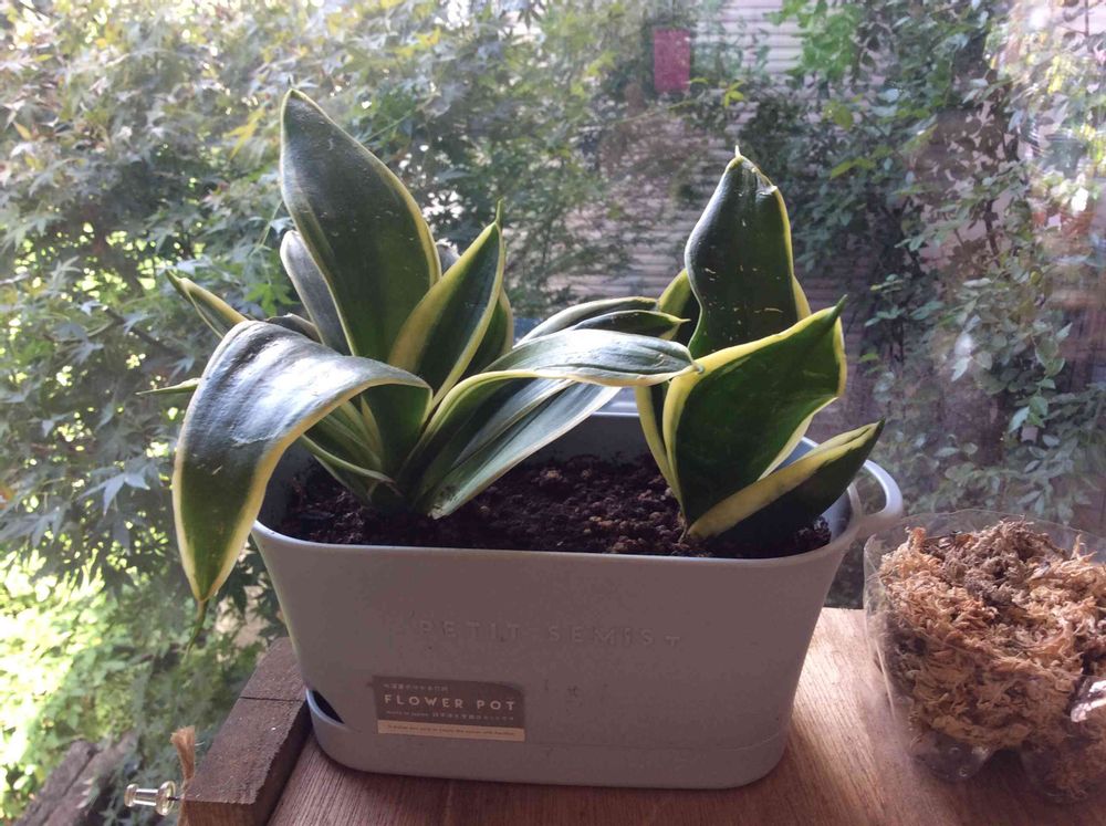 100均でお迎えしたサンセベリアの子供が大きくなったので、またまた100均で鉢を買ってきて分けて植えました。