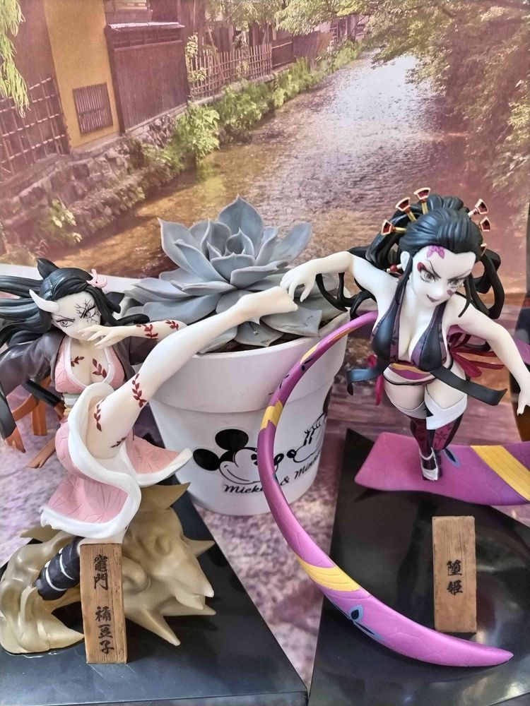 流石クニさんさん🌸🏷イイオンナ美人の日に⚔️禰󠄀豆子ちゃん🎀と堕姫ちゃん登場✨2個もフィギュア🎯おめでとうございます🎉🥂✨お披露目ありがとうございます(*ᴗ͈ˬᴗ͈)ꕤ*.゚💞