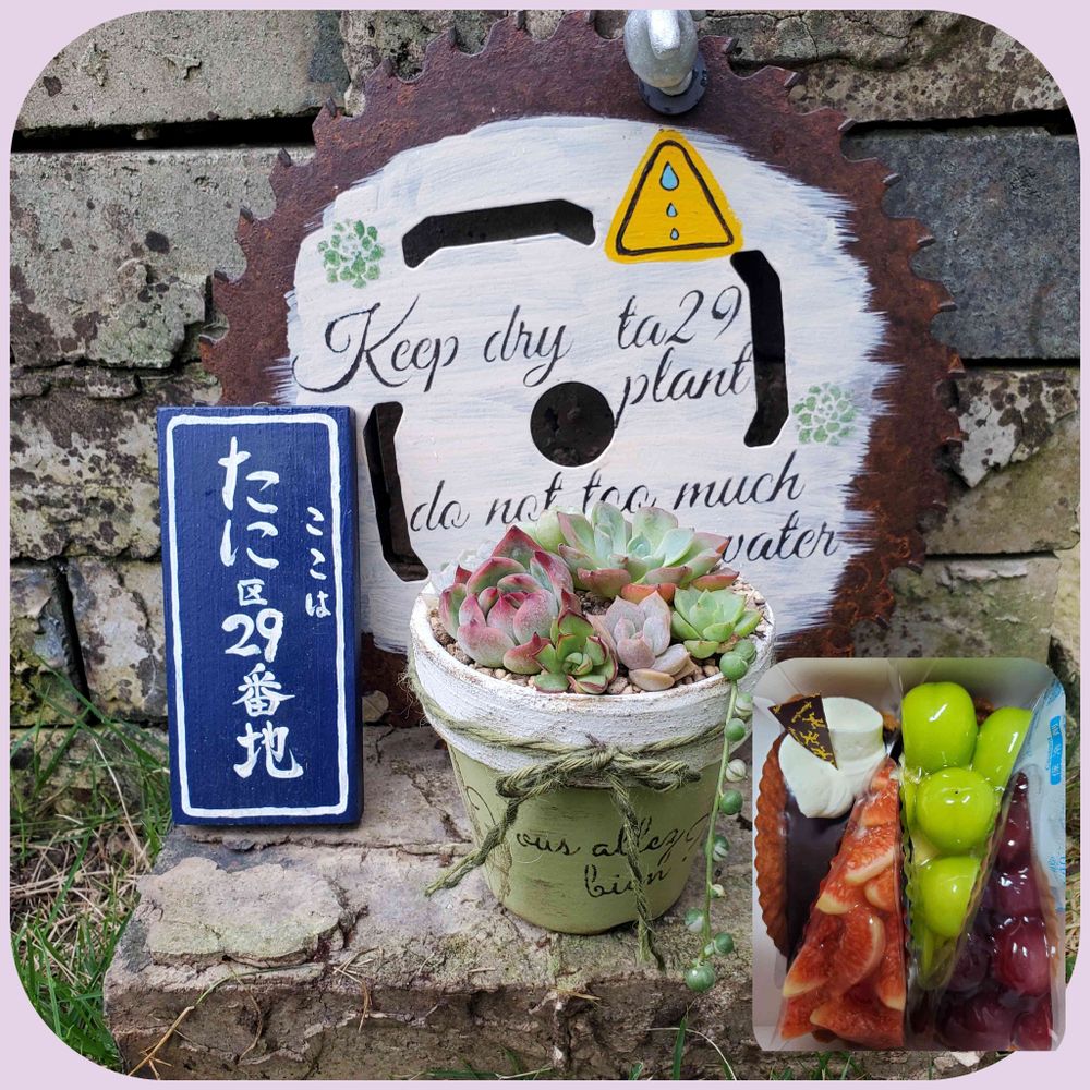 お嫁ちゃん、お誕生日おめでとうございますーー差し入れでケーキが食べられて嬉しかったでしょうねーー元気になって、退院できますようにーーー😋寄植えいいですねぇーー♥♥