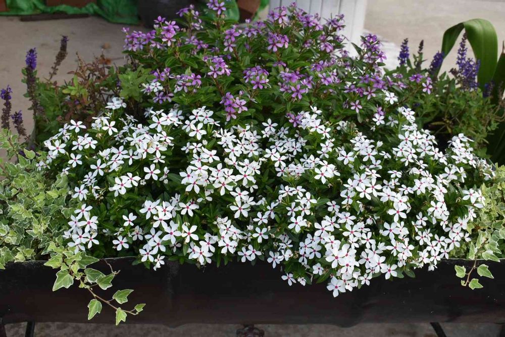 こちらの日々草フェアリースターもGSで興味を持ち初めてお迎えしました。特にカットもせずにそのままですがよく分岐して当初の8倍も大きくなりました。花期も非常に長くて頼りになります。