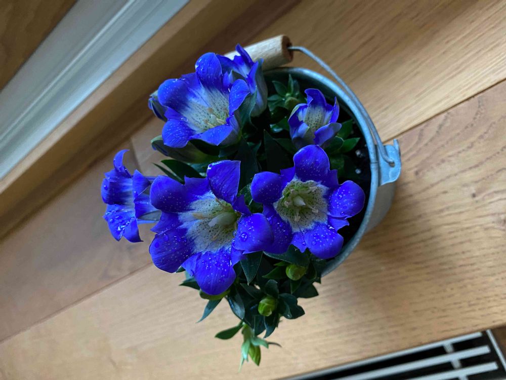 リンドウは和風なイメージですが 青いバケツとお似合いです🎶