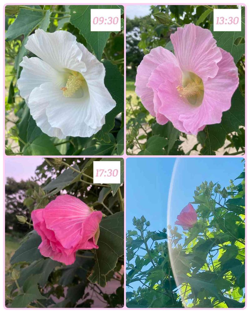 酔芙蓉の美しい瞬間✨🤍⇛💗見事に咲きましたね✨