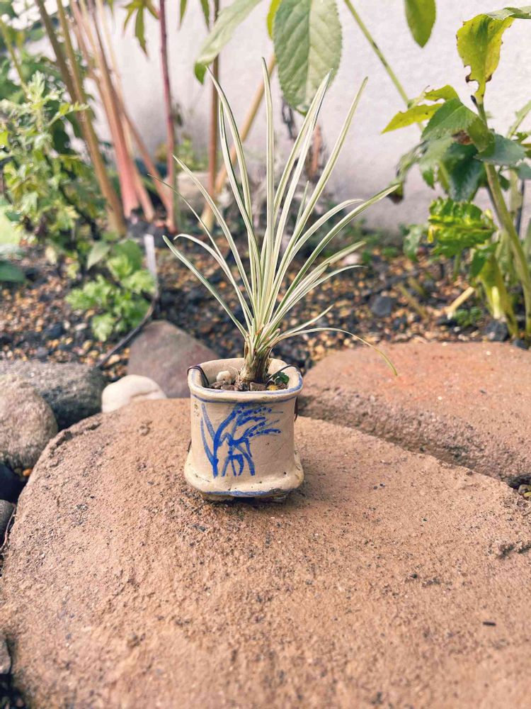 斑入り竜の髭、オーブン陶土の鉢は結局ひび割れしてしまうようです