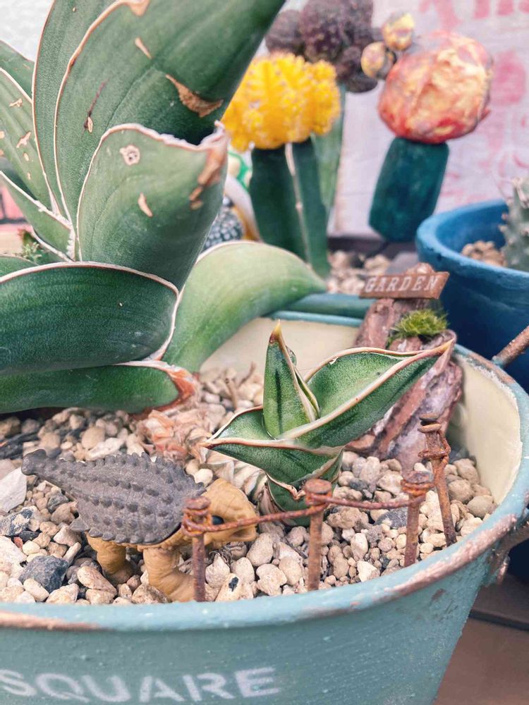 サンスベリア サムライドワーフ の 子株を守ってる❓恐竜🦖さんで参加します