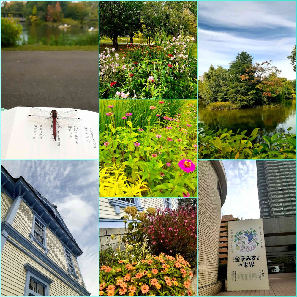 〈番外編〉北海道文学館の特別展『金子みすゞの世界』へ🚴♀️久しぶりに中島公園へ立ち寄り、衝動買いしてしまった💦童謡全集をベンチで読んでいましたら、赤トンボが本の上に♡何度も来てくれたから、赤トンボもみすゞファンだったのかな🥰