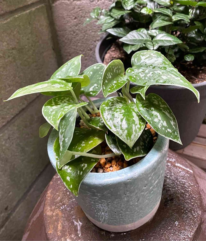 葉がシルクのような光沢でちょっとパール感があって綺麗なのと、斑入りというのも⭕️