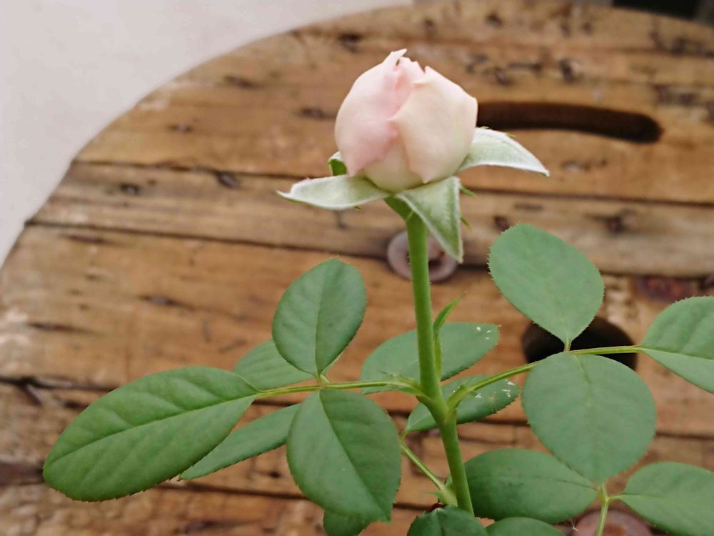 そんなバタバタの朝、バラ クリスティアーノの蕾が膨らんできました。初めてなのに無事に咲いてくれるかなぁ…