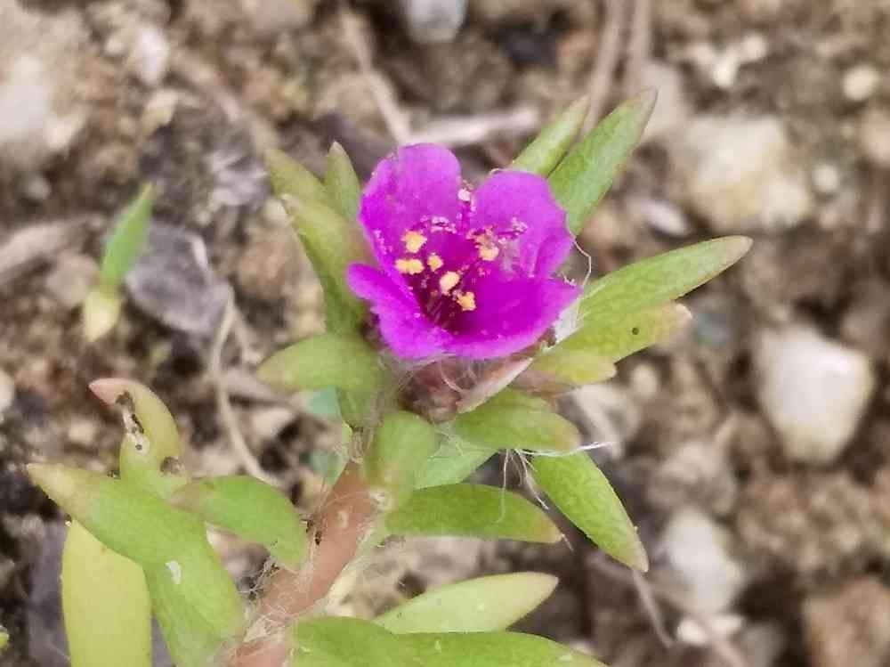 実家の草だらけの庭で小さなマツバボタンのようなお花が咲いています。