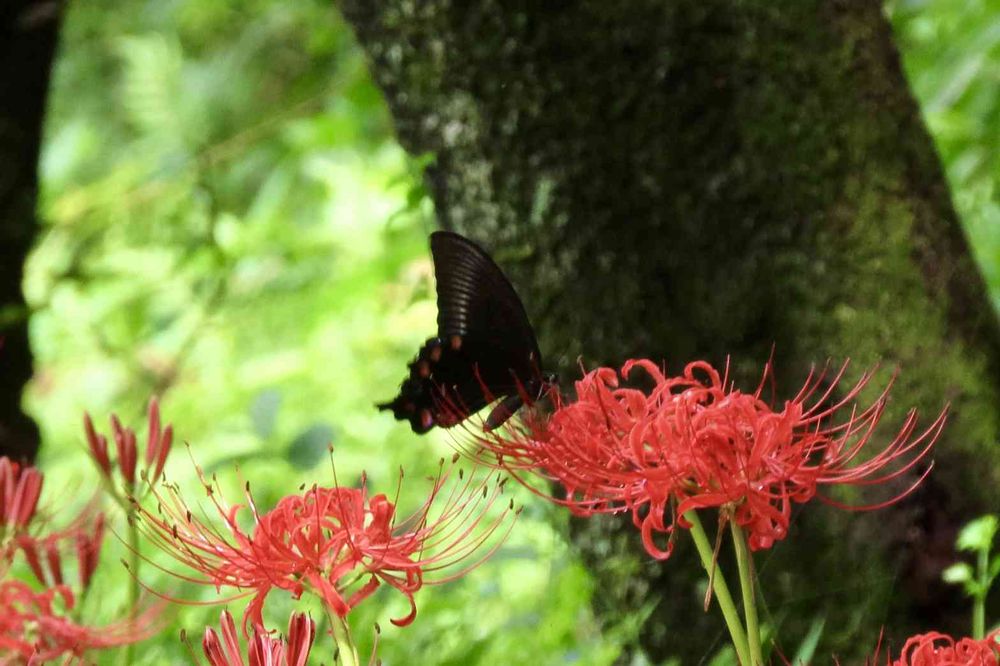 彼岸花とミヤマカラスアゲハ