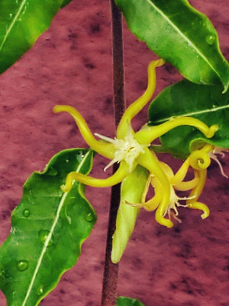 後ろの🌶️トウガラシみたいなのが蕾です。花がタコ🐙みたいだから火星人なんかな~?五本足だけど…
