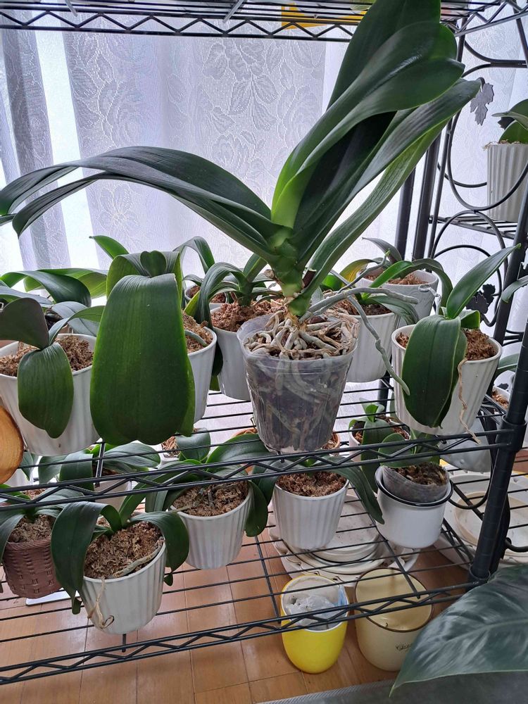 ダントツでかい子😲同じ仲間とは思えませんね~あと気になるのは鉢👀 ビニポット! 周りの胡蝶蘭も!素焼き鉢使われてないようですが、大丈夫なんですね