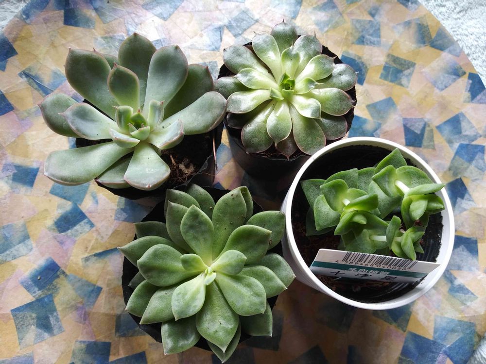 今日は雨の中、ダイソーへいきました。残念な姿の多肉たちがたくさんいました。4つ購入しました。