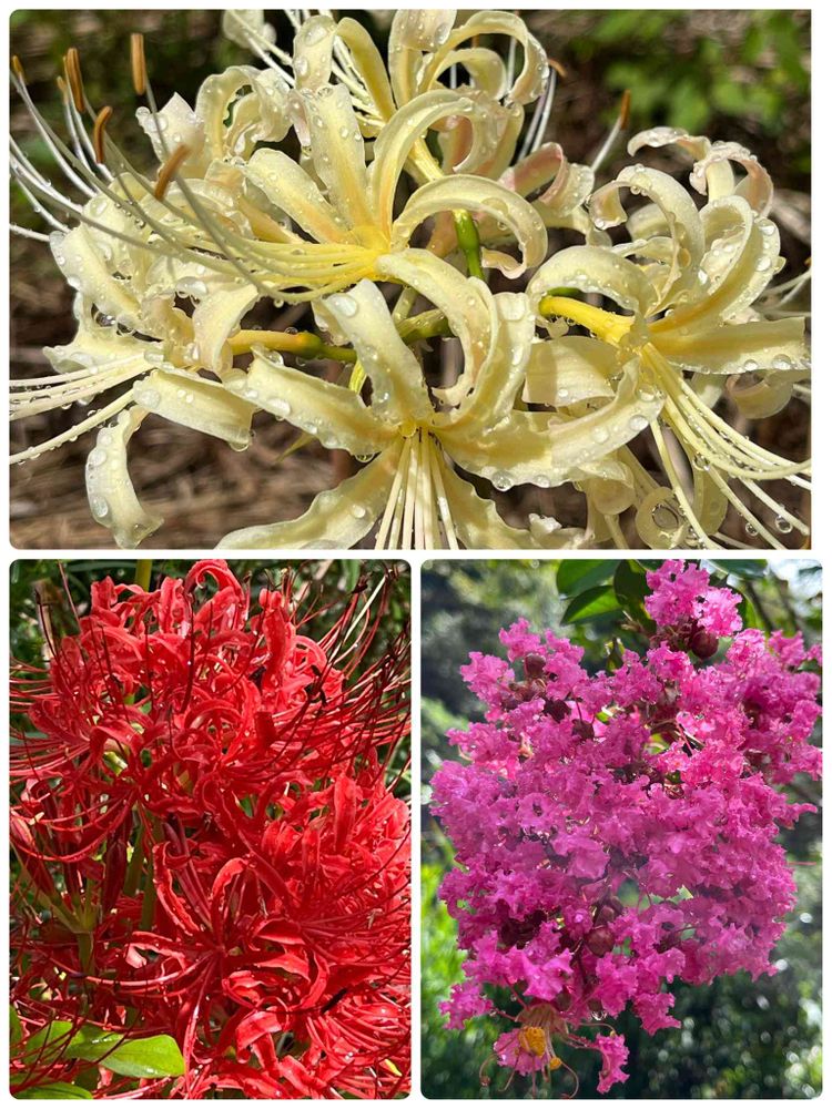 実家の庭の彼岸花と百日紅😊
