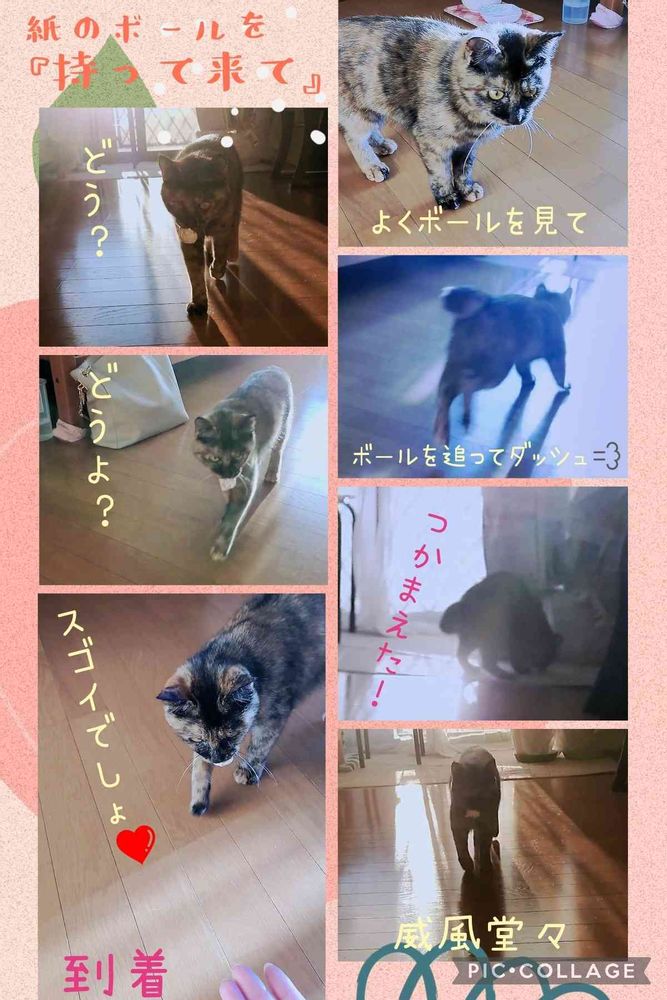 我が家の愛猫・月ちゃん🌛が、私が投げた紙のボールを取りに行って、私のもとに持って帰ってくる動画📹を編集してみました😄😸