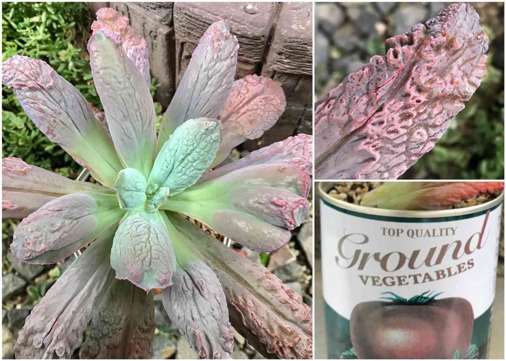 、を植えたDAISOのトマト缶も紫外線でいい感じに変色中。