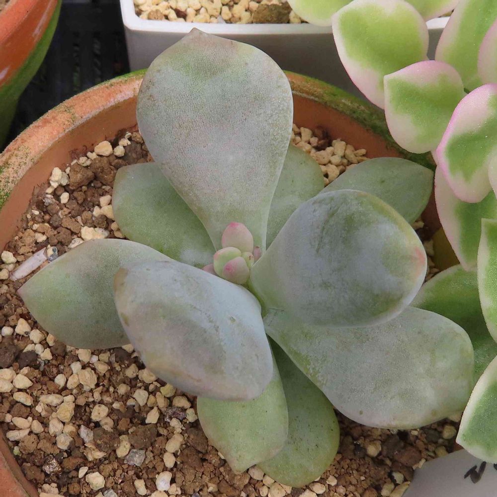 しばらく成長点が消えていたノマ。周辺から子株が出てくるかと思ったら,いつの間にか成長点が復活していた。ただ,今後どういう形になっていくのか予想できない。大きい葉はそのうち枯れてしまうかも。